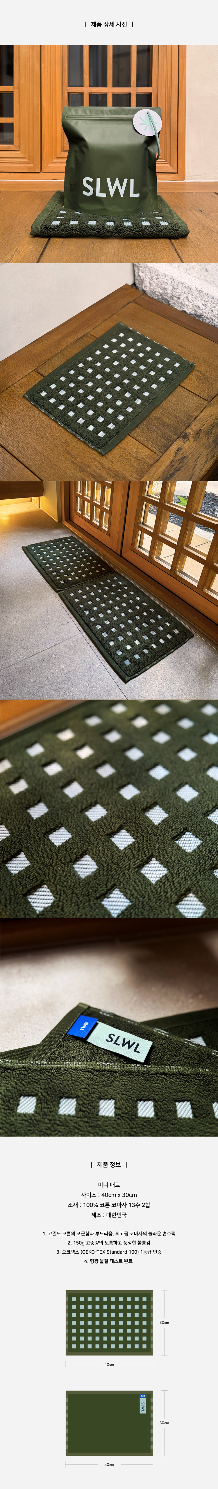SLWL 타월 시리즈의 감각을 이어받은 격자 패턴의 미니 매트입니다.